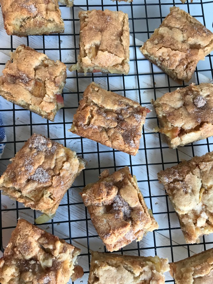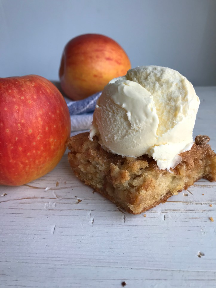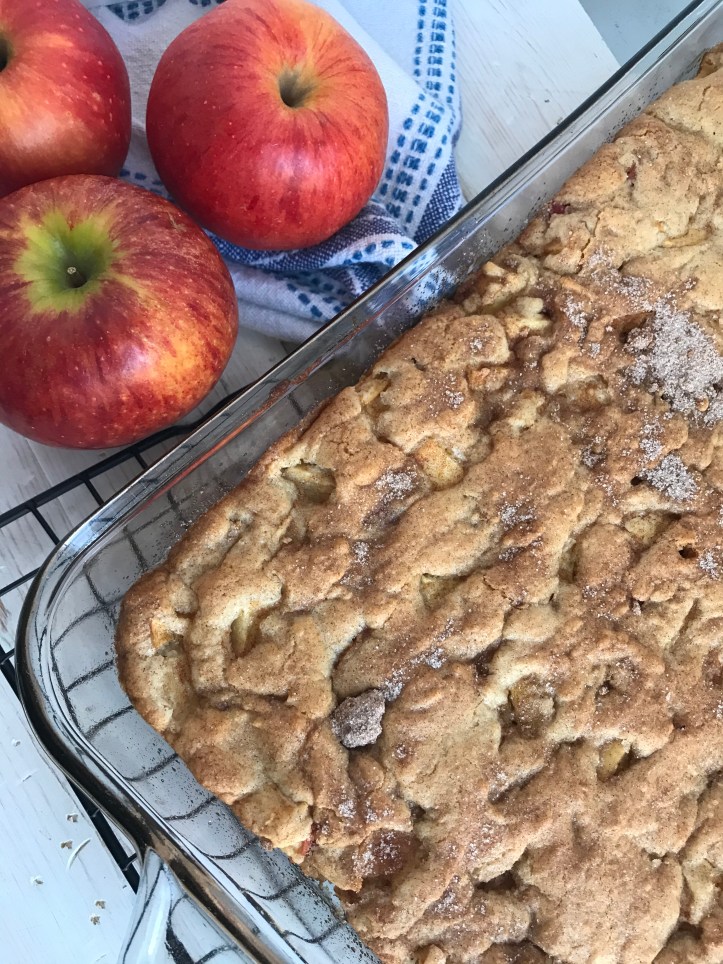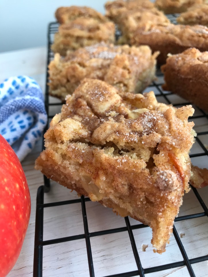 This is a MUST BAKE fall dessert/breakfast/snack/eat all day type of recipe!!! I absolutely love it and normally have it memorized because I make it so often! I can remember my mom making it in a special jelly roll pan and whenever I see that pan now I know it’s Apple Square time! These have the perfect consistency of soft and chewy bottom but have a slight sugary crispy top. Pair it with a scoop of vanilla ice cream or just have it alone, it will be sure to please all ages!