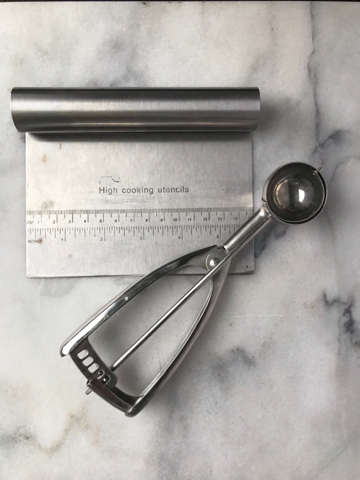 4. & 5. Cookie scoop and Stainless Steel scraper/chopper