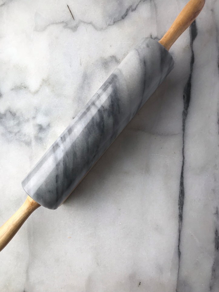 I think this one is just because how I was raised. My mom had one when I was growing up and so that is what I am use to. Be careful when storing it because they are super heavy. I may or may not have dropped it on my little brothers toes once…sorry bud! Haha I also have a wooden one but love to use my marble one for bread, cinnamon rolls and sugar cookies.