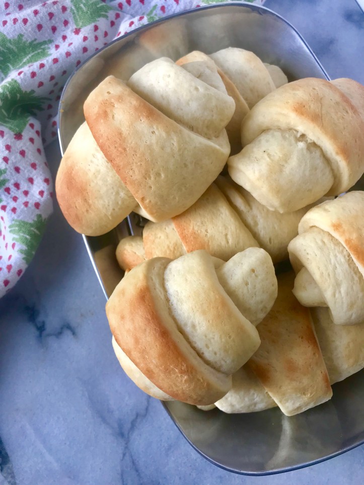Do you know the feeling of gathering around the dinner table after church on Sunday and there is a gourmet meal spread out in front of you? What catches your eye to try first?! I always, always, always go for the rolls. I just love HOMEMADE, fresh, flaky dinner rolls. So when my mother in law made this recipe for Thanksgiving, I about died and wanted to put the entire basket on my plate.