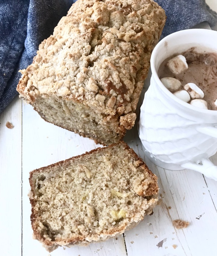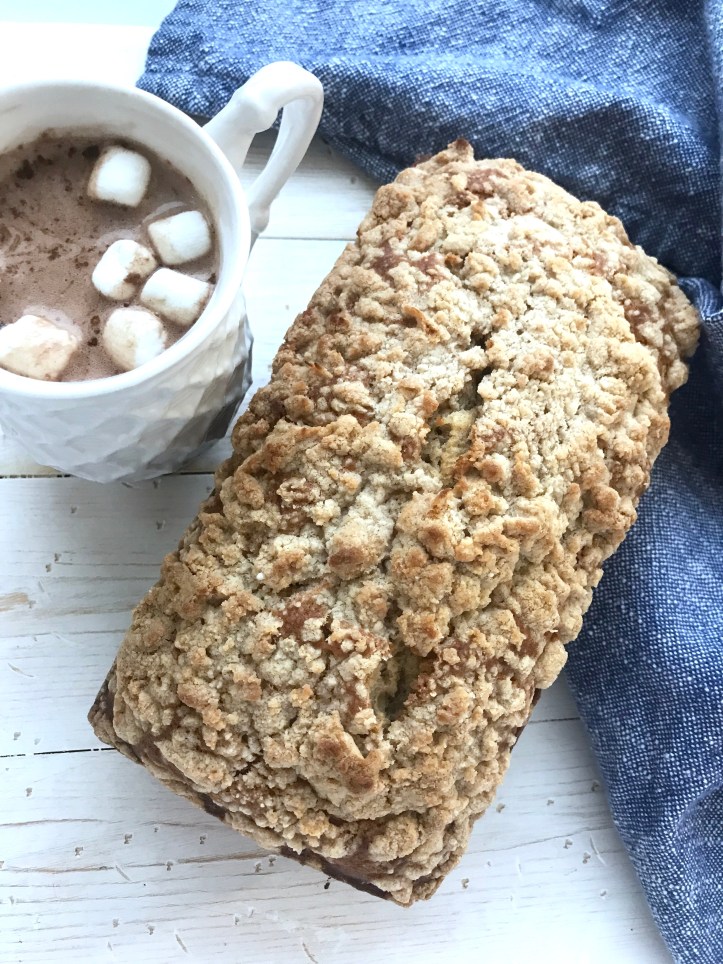 It always seems no matter how green I get the bananas we can never eat them in time before they turn brown! It also doesn’t help that Mr. W doesn’t eat bananas unless cooked in a bread and that our apartment is always 100 degrees thanks to living in graduate student housing. But I now have a solution to one of those problems!! This crumble on top of the bread would make any banana hater rethink his ways. The crumble is so light and just dissolves the moment it hits your mouth! The banana bread underneath is a beautiful golden brown with a small warmth of cinnamon! The perfect combination for a wet and snowy morning!!
