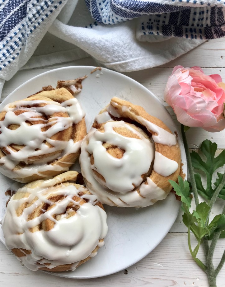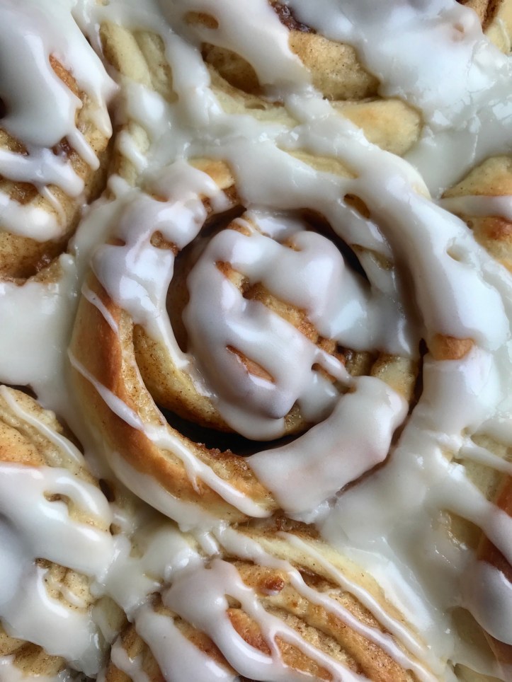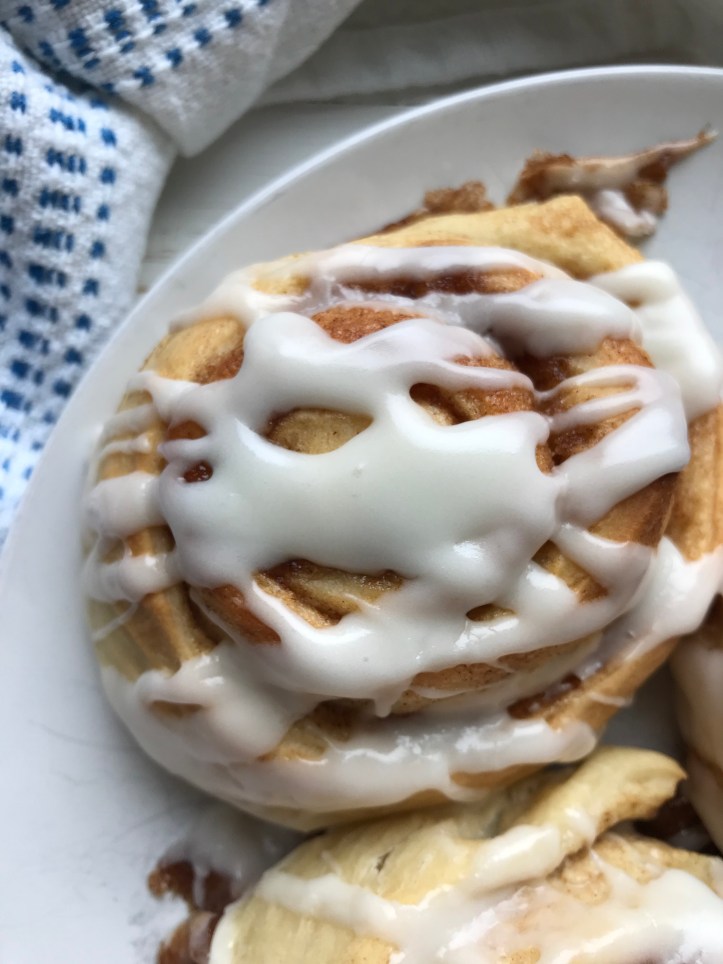 Then my sister and I also worked at Great Harvest and were the sweets bakers and so whipping up a batch of cinnamon rolls isn’t hard! We have our certain “way” of doing the roll or spreading the cinnamon mixture but pretty much end up with the same results! It’s a fun memory to share together.