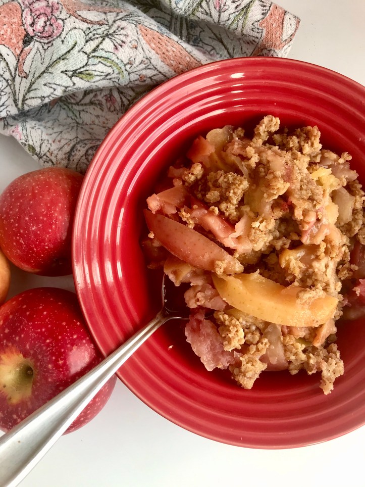 OR if you would like a crisper topping, transfer the apple crisp into an oven-safe dish and broil it in the oven for 5 minutes to brown the topping.