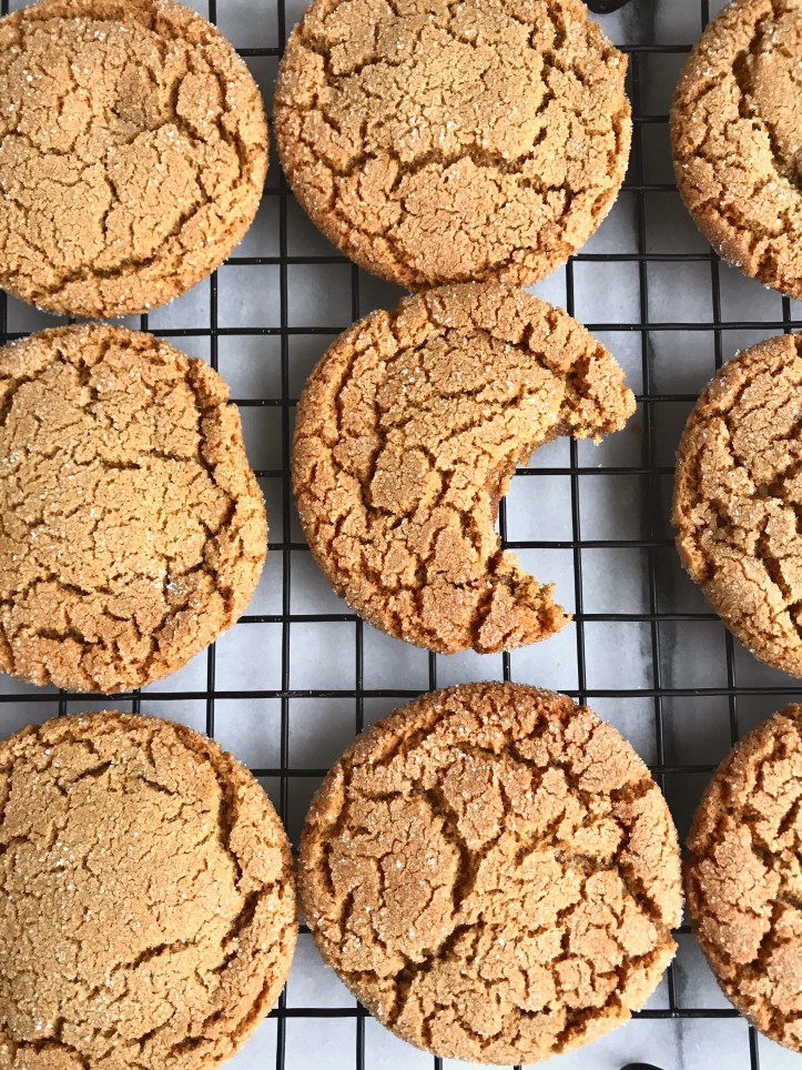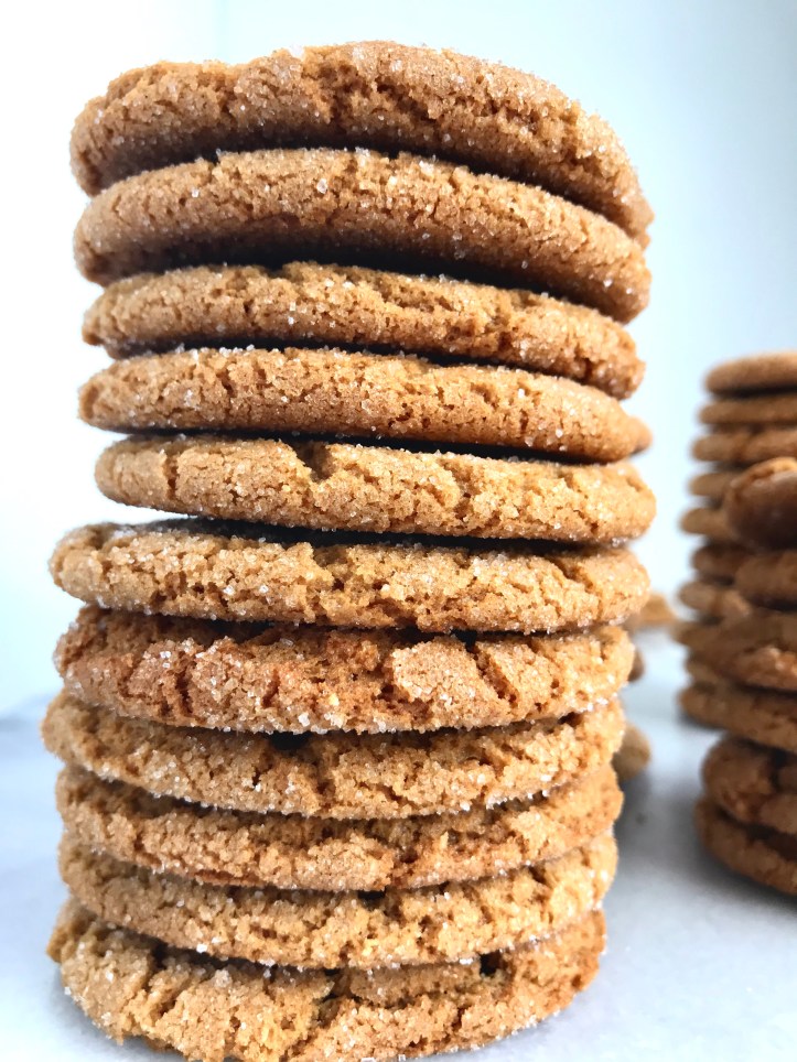 So I think that we all have certain foods for each holiday and these gingersnap cookies are a MUST HAVE for me during Christmas time. When I worked at Great Harvest I absolutely loved their gingerbread cookies and would have one everyday after lunch. There is something special about the spice from the ginger mixed with cinnamon and the taste of sweet molasses. Then you pair that with the crunch of these sugar rolled edges and I could die and go to heaven!