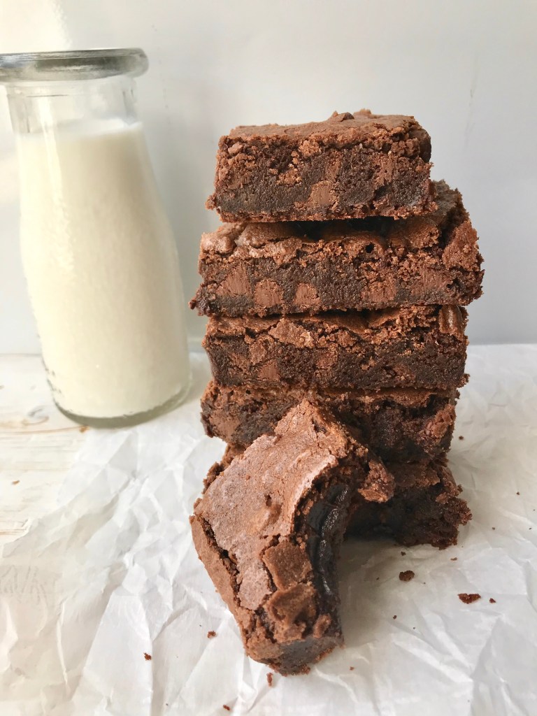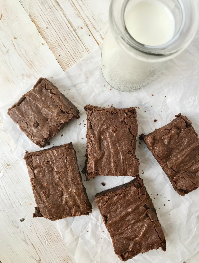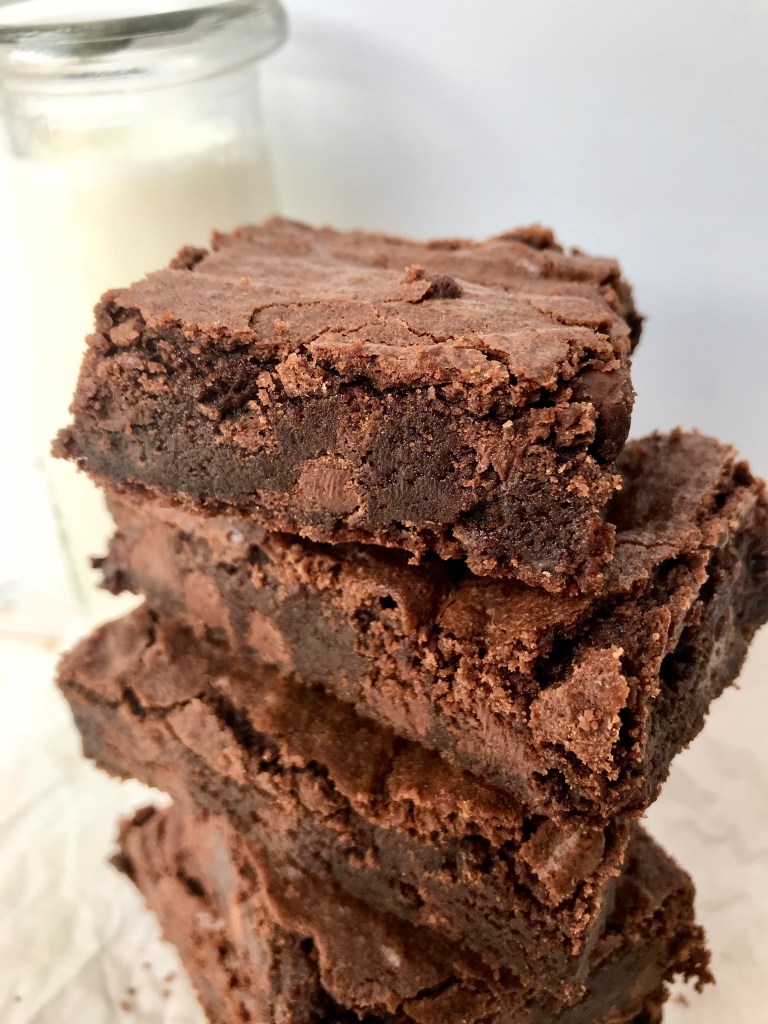 Every Sunday growing up I was in charge of making a dessert in the evening. It was normally brownies just out of the box. Our family LOVES brownies, especially the edge pieces!! We even have a special pan that all pieces have at least 2 side pieces. So since I was raised on gooey soft box brownies, I couldn’t stand it when people would make homemade brownies and they would be more like a cake than brownies. When I found this recipe, I knew it was a keeper!! If everyone would make these every Sunday, Mondays wouldn’t be so bad!