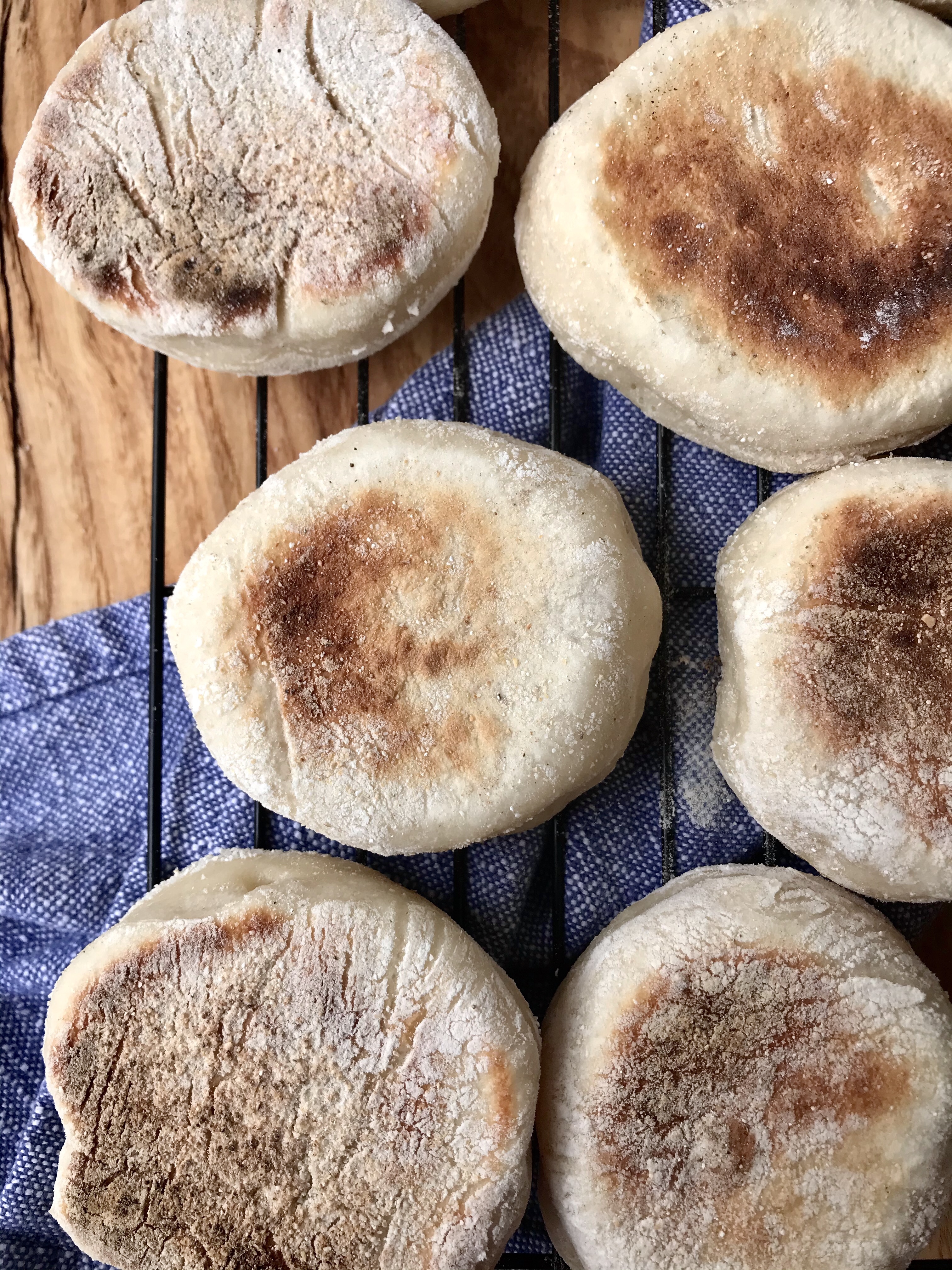 - Use a 3″ biscuit cutter (or anything of similar size, I use a cup or a jar screw lid) to cut rounds and place them on a parchment lined baking sheet that’s been sprinkled with cornmeal. Sprinkle the tops with cornmeal, cover with a tea towel and allow to rise for 1 hour at room temperature.