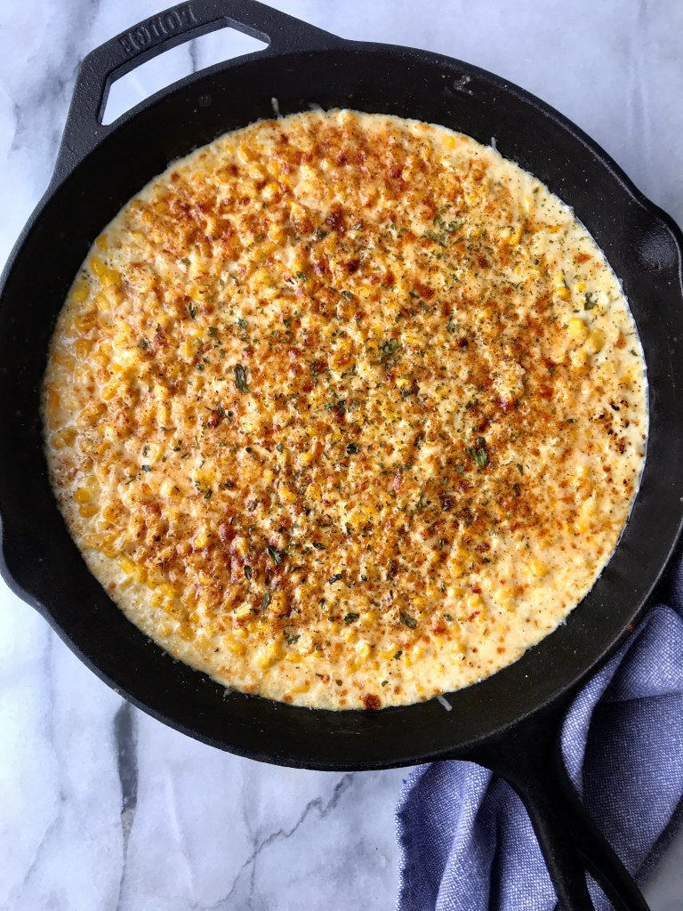 - Remove from the heat, add in the fresh grated parmesan. Stir while the parmesan melts into the corn. (Now I always like to save a tiny amount of cheese to cover the top of the corn and then broil it to crisp the top layer up a bit. This is also when I add the smoked paprika and parsley to make it look beautiful.)