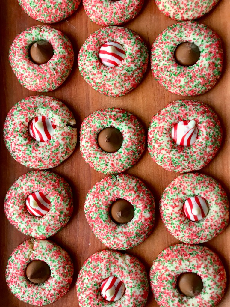 - The cookies will slightly be under cooked. Press chocolate kisses into warm cookies.
