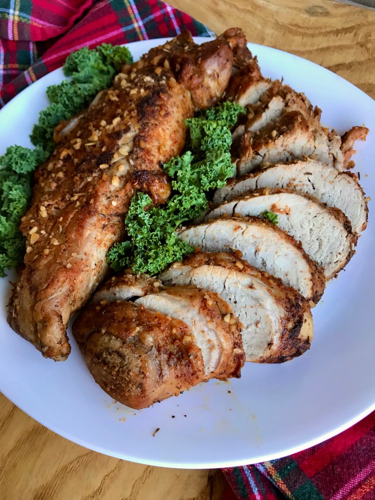 - IF USING SHEET PAN-Tent a piece of foil over the pork so the top doesn’t burn, but the inside continues to cook. Put back in the oven and continue to cook for 25 to 30 more minutes, or until internal temperature of the pork loin reaches 145˚F. Use an Instant Read Thermometer to check for doneness. Stir vegetables half way through cooking.