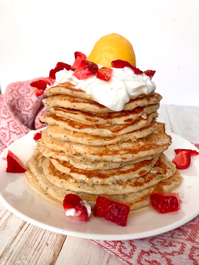 - Preheat an electric griddle to 375 degrees. In a mixing bowl whisk together flour, poppy seeds, baking powder, baking soda and salt. Create a well in dry mixture and set aside.